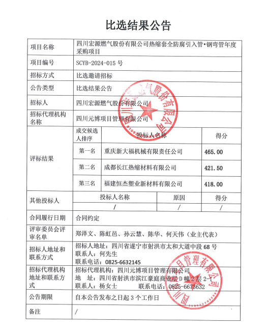 上一條:燃氣管道定期檢驗服務項目招標結果公告