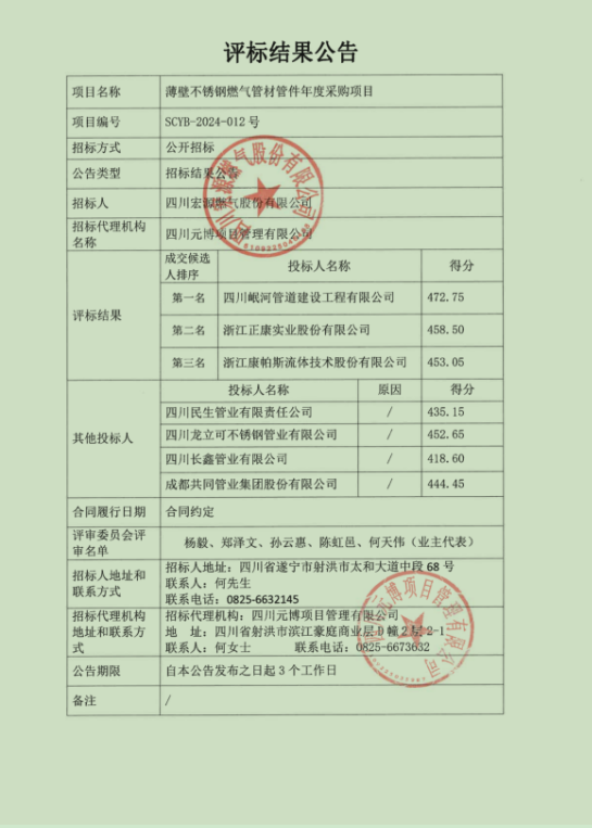 上一條:薄壁不銹鋼燃?xì)夤懿墓芗甓炔少徳u標(biāo)結(jié)果公告