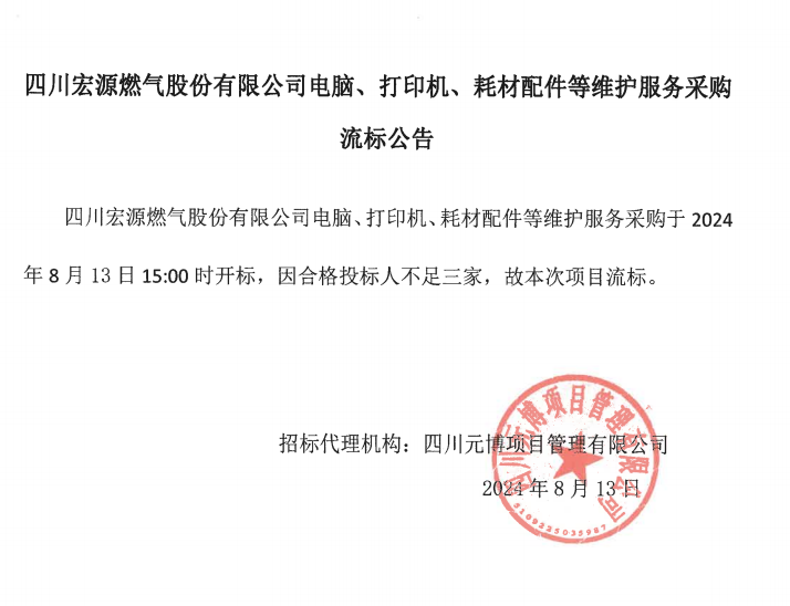 上一條:四川宏源燃氣股份有限公司勞動保護用品采購中止公告